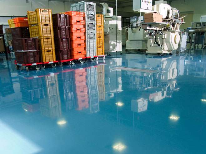 , tekstil fabrikaları, ilaç fabrikaları, entegre büyükbaş hayvan çiftlikleri süt sağım ve sağmal üniteleri, hastaneler, okullar, elektrik santralleri, depolar, yükleme boşaltma alanları, montaj alanları, oto galeri, gösteri alanları, boyahane ve bakım üniteleri, otoparklar, servis alanları ve benzeri tesislerde, betonun aşınma, darbe ve kimyasal dayanımını arttırmasından ötürü zemin kaplaması olarak da kullanılmaktadır.
